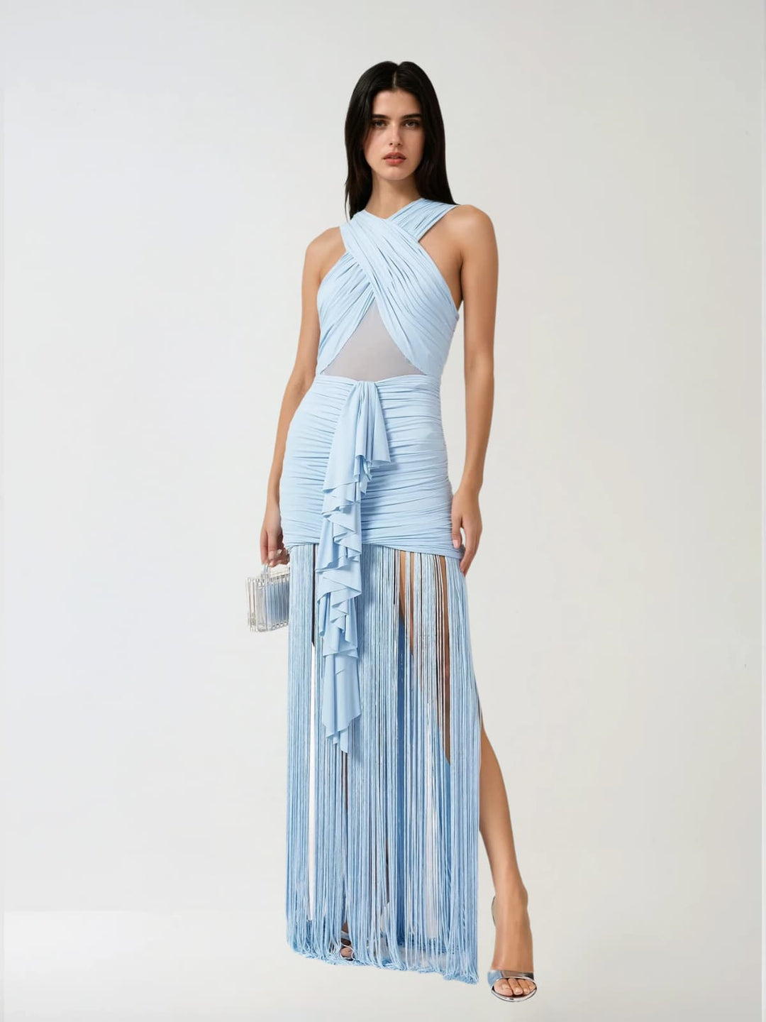Ouray Sleeveless Ruched Fringe Maxi Dress