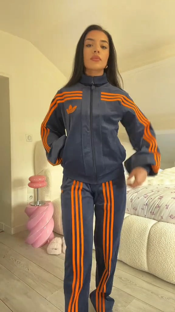 This exclusive Adidas set blends soft, cozy fabric with bold orange stripes for a clean, confident look that stands out on any day.